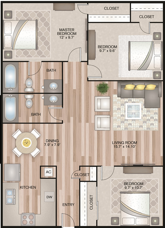 1, 2 & 3-Bedroom Apartment Homes